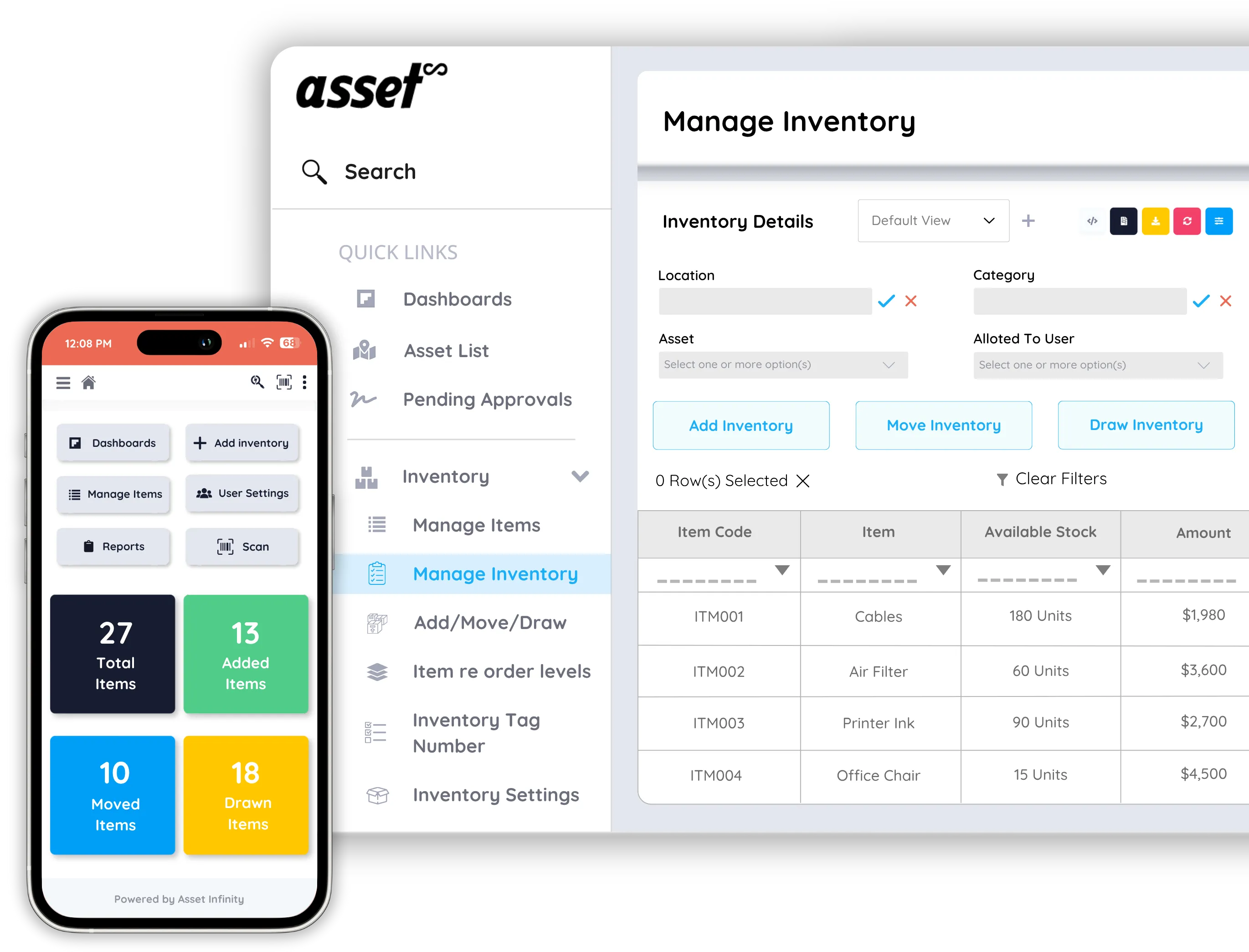 Asset Infinity’s intelligent inventory management platform gives you full control over your inventory lifecycle. Centralize item data, automate reorders, and eliminate the manual errors that cost time and money. Gain real-time visibility, effortless scalability, and measurable ROI—all from one powerful cloud-based solution designed for modern businesses.